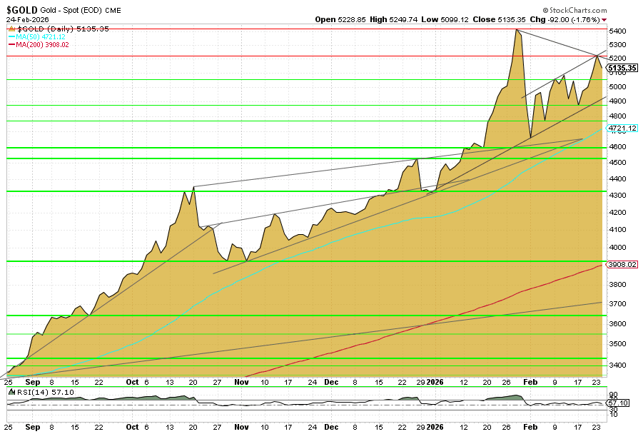 Nach dem knapp 15-prozentigen Kursrücksetzer Ende Januar hat sich der Goldpreis wieder stabilisiert. Begleitet von erhöhter Volatilität etablierte sich zuletzt ein robuster Aufwärtstrend. Am Dienstag ging Gold am Spotmarkt mit 5.135 USD pro Unze aus dem Handel. Gegenüber der Vorwoche entspricht dies einem Anstieg um 5,5 Prozent. Seit Jahresbeginn summiert sich das Kursplus auf 19 Prozent.