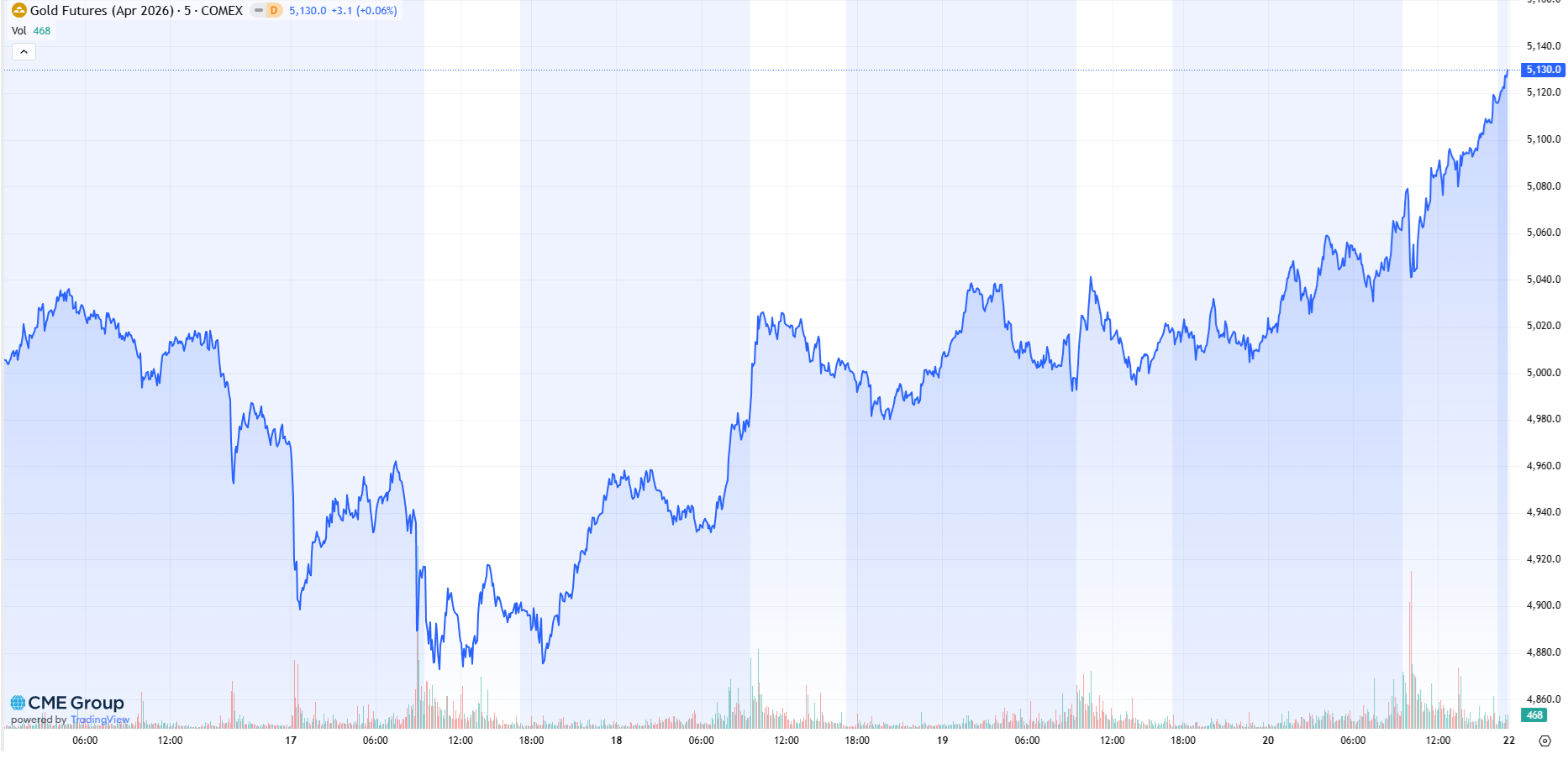 Der Goldpreis legte in der vergangenen Woche spürbar zu. Gestützt von gestärkter technischer Basis und günstigen Fundamentaldaten verteuerte sich Gold (CME Spot) innerhalb einer Woche um 1,3 Prozent auf 5.108 USD (4.336 EUR).
