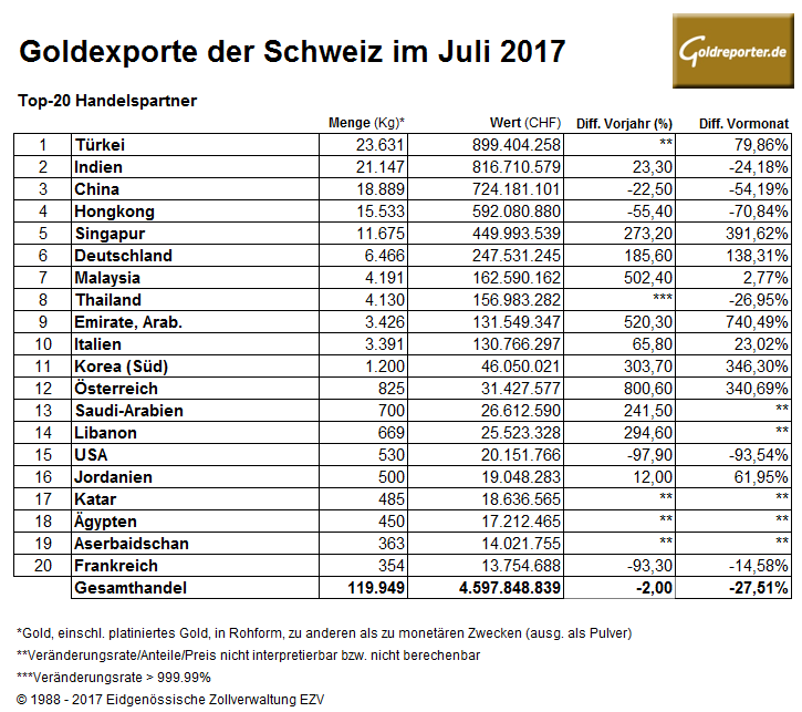 Schweiz Goldexporte 07-2017