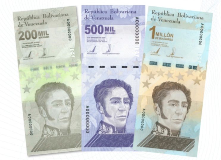 Es handelt sich bei den neu gedruckten Zetteln um Scheine mit den Nominalen 200.000, 500.000 und 1 Million, jeweils in der Landeswährung Bolivar. Die Noten kommen ab dieser Woche schrittweise in Umlauf.