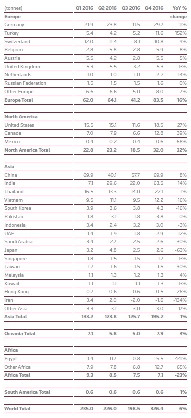 Goldnachfrage nach Ländern Q4 2016