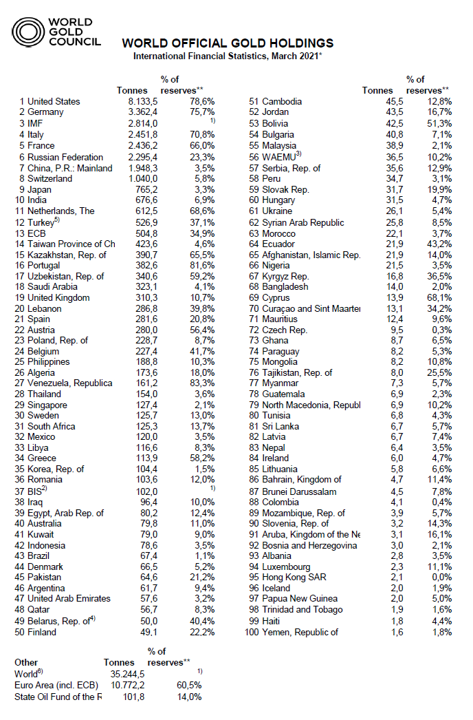 Weltweite Goldreserven-2021
