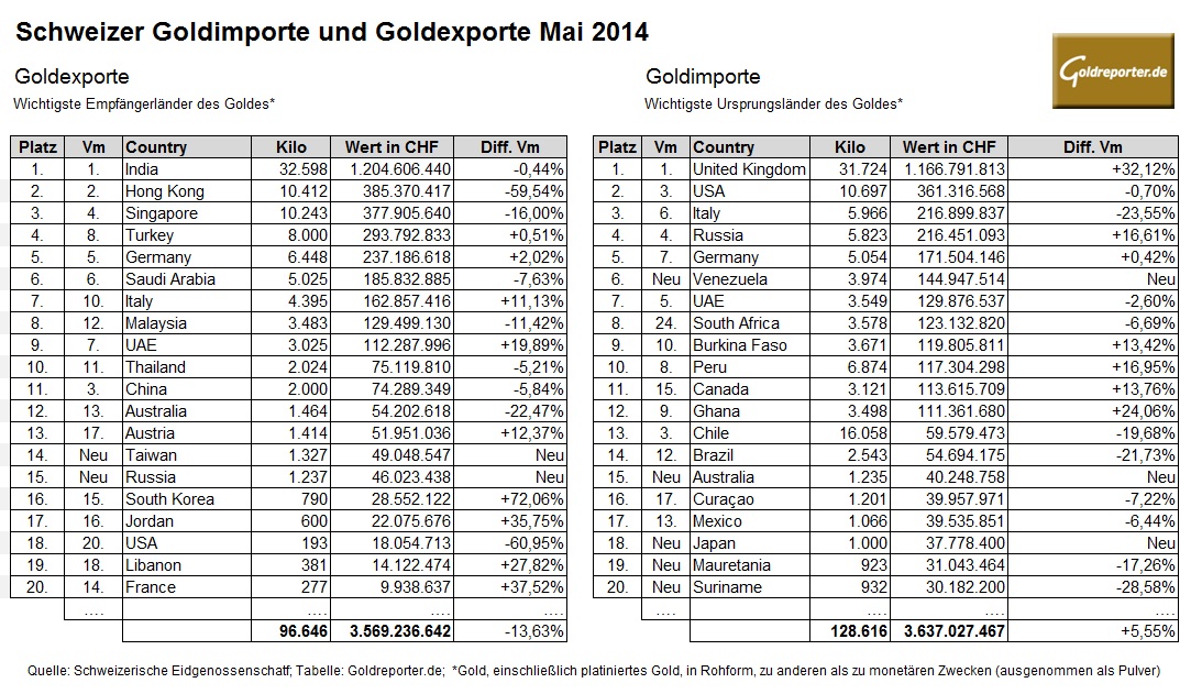 Schweiz Gold Außenhandel 05-2014