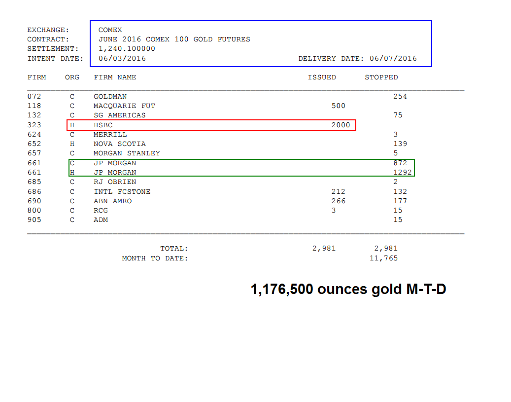 Nachdem JP.Morgan vorgestern über 2000 Gold-Kontrakte (200.000 Unzen) zum Stückpreis von $1240,-/ Unze von der Bullionbank HSBC ‚eingesackt‘ hatte, durfte man durchaus davon ausgehen, daß der Goldpreis weiter steigt, denn JPM wird nicht ‚auf’s falsche Pferd setzen‘, wenn man selbst das Wettbüro besitzt?
