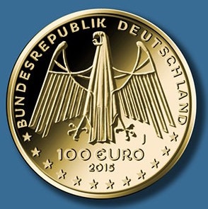 Auf der Wertseite ist ein Adler abgebildet, der Schriftzug „BUNDESREPUBLIK DEUTSCHLAND“, Wertziffer und Wertbezeichnung, die Jahreszahl 2015, die zwölf Europa-Sterne sowie – je nach Prägestätte – das Münzzeichen „A“ (Berlin), „D“ (München), „F“ (Stuttgart), „G“ (Karlsruhe) oder „J“ (Hamburg). Die Münze wird wie die Vorgänger aus Feingold (999,9/1.000 Anteile) bestehen. Ihr Gewicht wird 15,5 Gramm und der Durchmesser 28 mm betragen. Der Münzrand ist geriffelt.