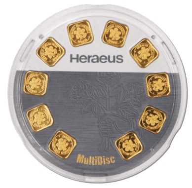 Der Hanauer Edelmetall-Spezialist Heraeus bietet mit der MultiDisc einen interessanten 1g-Gramm-Goldbarren-Spender an.