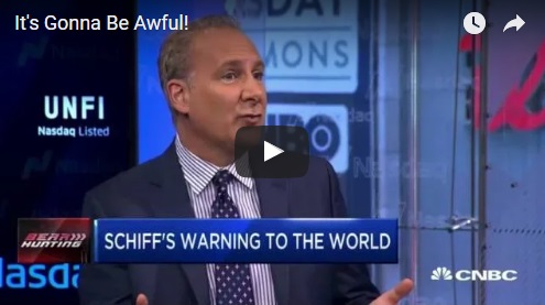 In der CNBC-Sendung „Bear Hunting“ wird Fondsmanger und Buchautor Peter Schiff gefragt, wie die nächste mögliche Finanzkrise wohl verlaufen wird. „Es wird schrecklich werden“, sagt er. Alle im Studio lachen.