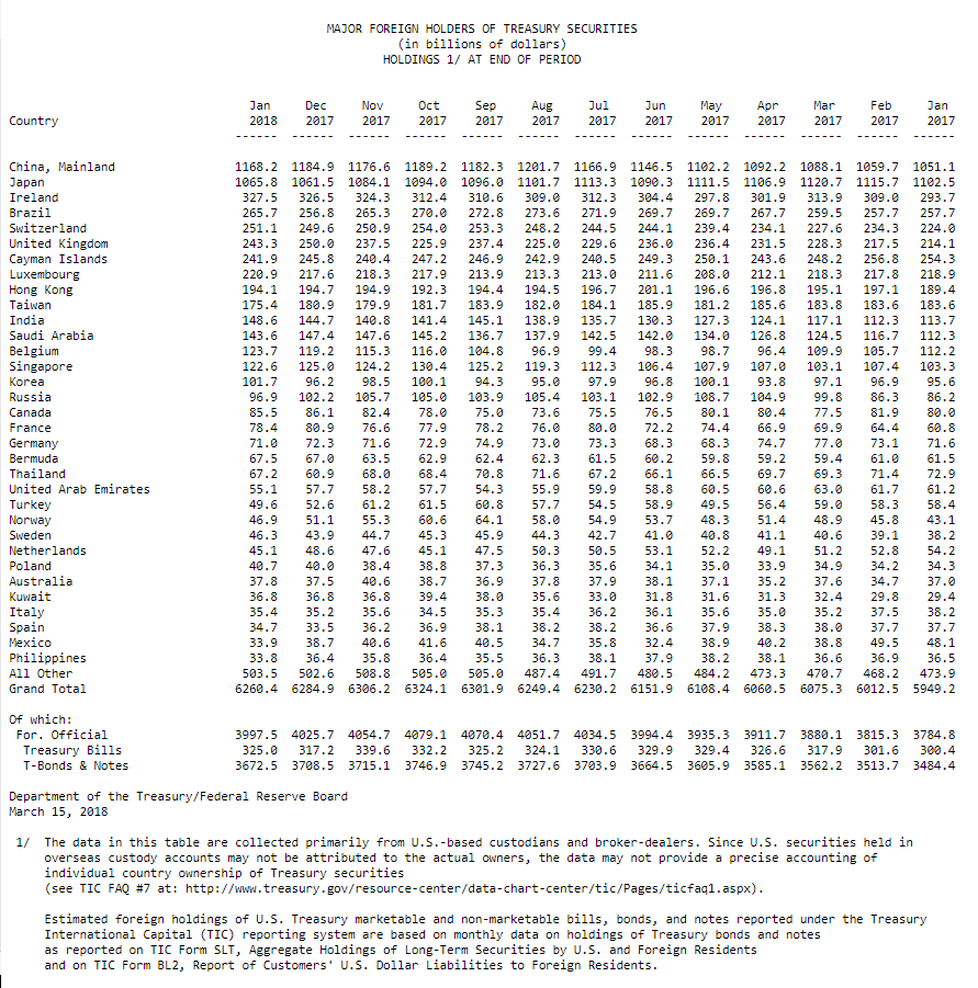 Der größte Besitzer von US-Schulden bleibt jedoch das U.S. Federal Reserve System. Die Fed hatte Ende Januar marktfähige US-Schuldscheine im Wert von 3,7 Billionen US-Dollar in ihrer Bilanz.