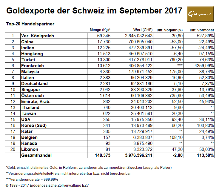 Schweiz 09-2017 Goldexporte