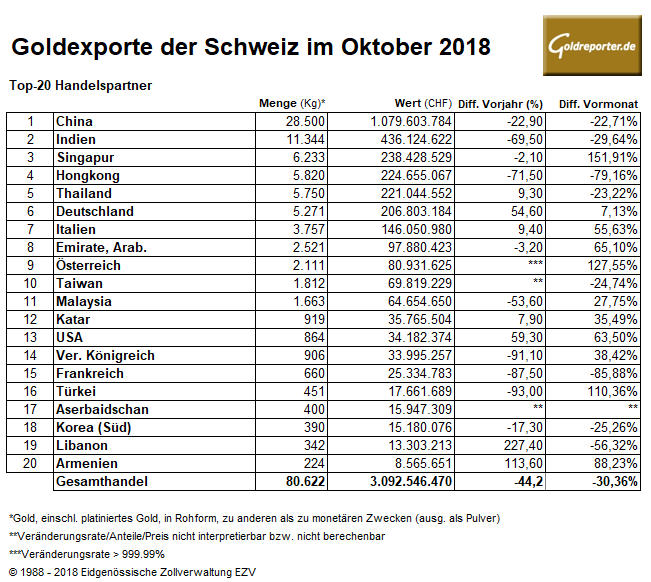 Goldexporte Schweiz 10-2018