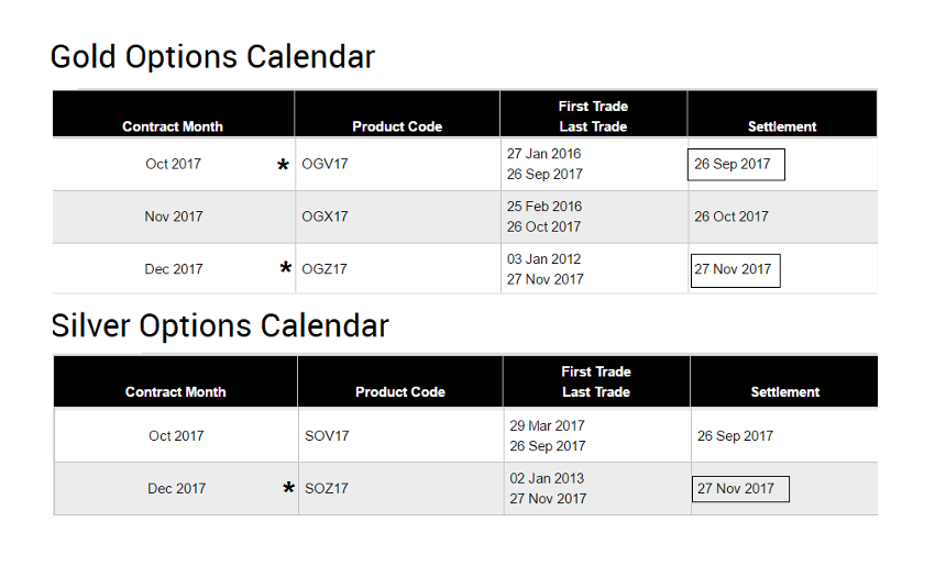 Der Gold-/Silber-Kalender für die COMEX zeigt für heute ein Verfallsdatum der CALL-/PUT-Optionen für den Kontrakt-Monat Oktober.