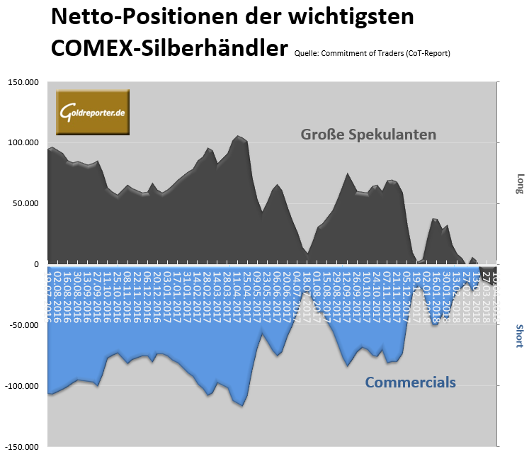 Die aktuellen CoT-Daten vom Handel mit Silber-Futures an der US-Warenterminbörse COMEX zeigen per 10. April 2018 folgende Veränderungen.