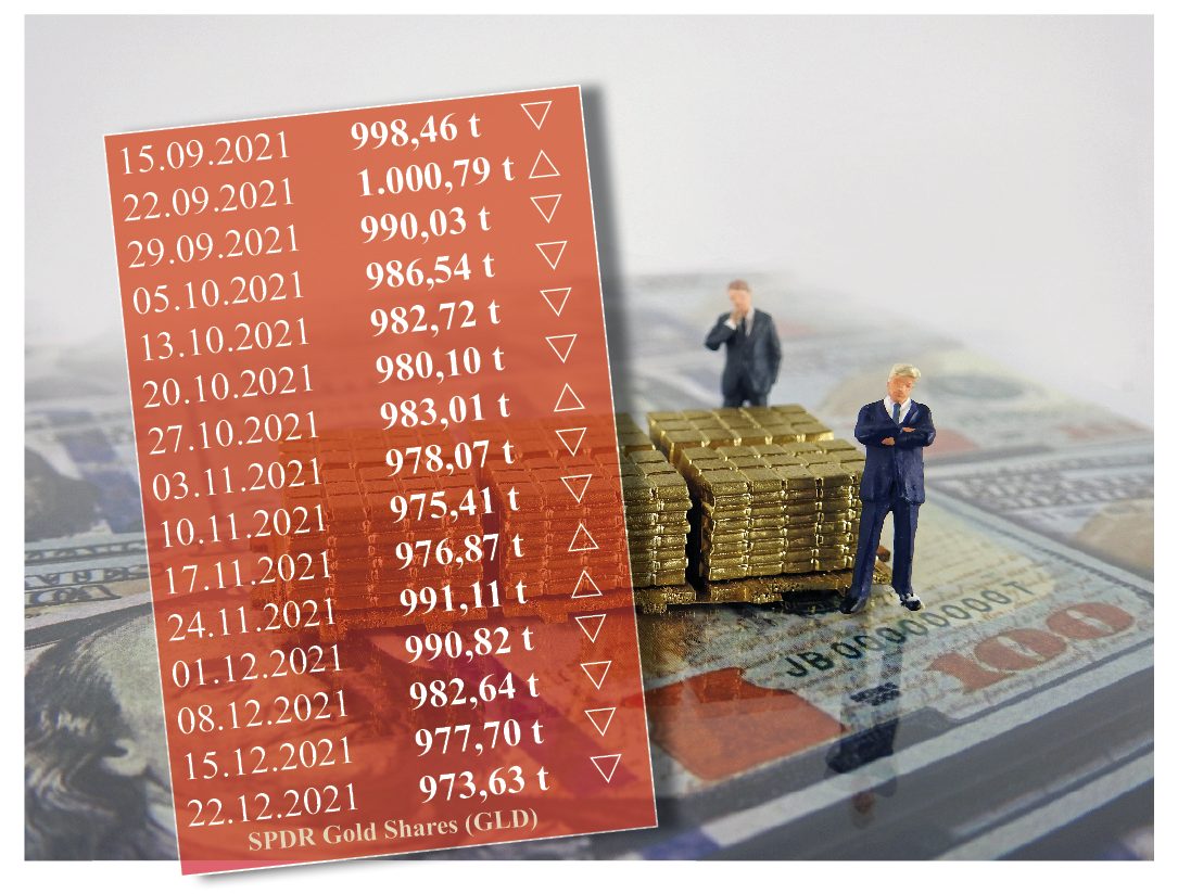 Die beiden großen Edelmetall-ETFs meldeten in dieser Woche die niedrigsten Metall-Bestände seit Jahresanfang. Aus dem GLD flossen noch einmal 116 Millionen Dollar ab.