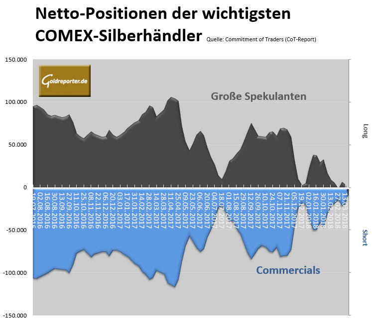 Die aktuellen CoT-Daten vom Handel mit Silber-Futures an der US-Warenterminbörse COMEX zeigen per 20. März 2018 folgende Veränderungen.