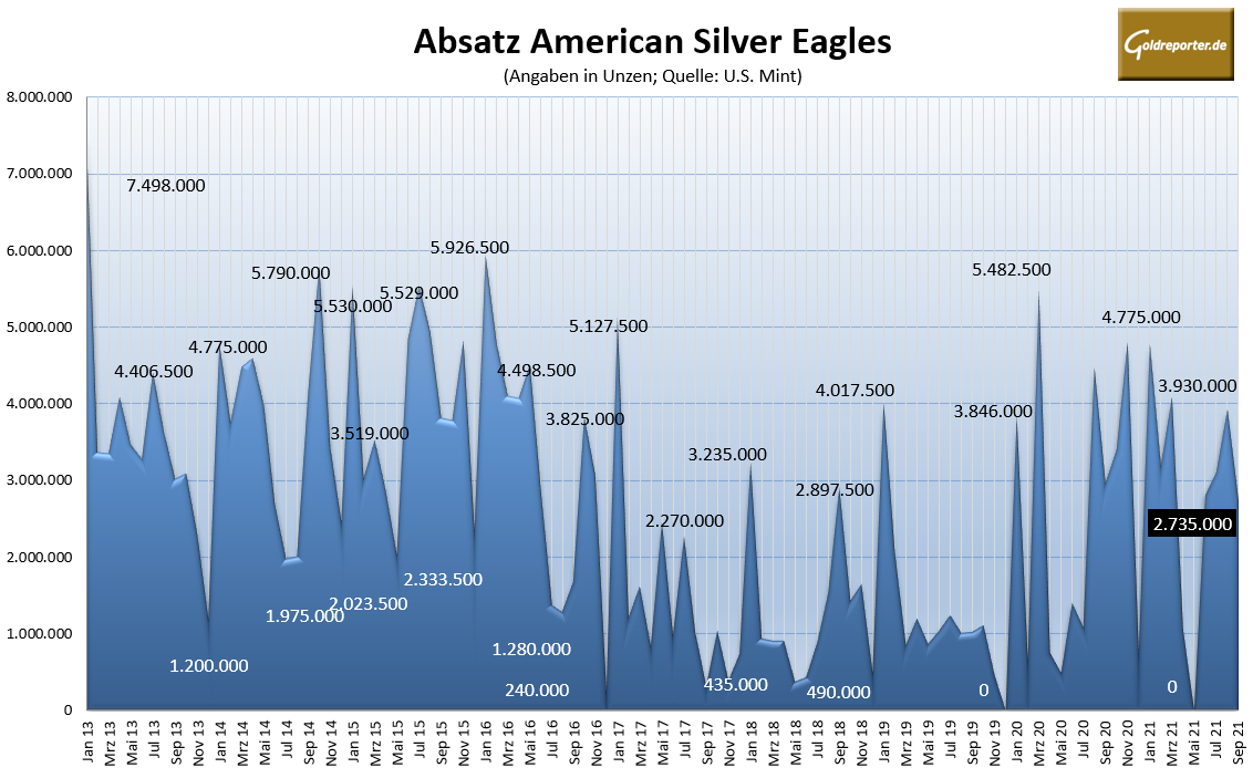 Silbermünzen American Eagle: Erneuter Millionen-Absatz