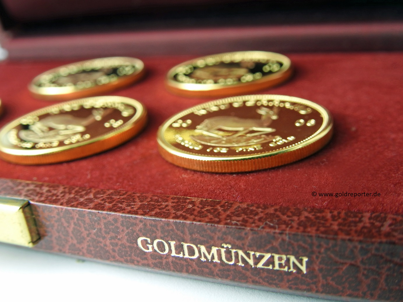 Krügerrand-Goldmünzen zu einer Unze waren am Freitagvormittag im deutschen Edelmetall-Handel wieder etwas deutlicher unter 1.700 Euro zu haben. Auf Basis unserer wöchentlichen Marktbeobachtung unter ausgewählten Händlern kostete ein Exemplar der beliebten Anlagemünze durchschnittlich 1.689,01 Euro. Der Goldpreis notiert zu diesem Zeitpunkt bei 1.615,45 Euro. Das durchschnittliche Aufgeld für Krügerrand-Goldmünzen betrug somit 4,55 Prozent und blieb somit gegenüber Vorwoche praktisch unverändert. In „normalen“ Zeiten bekam man eine Krügerrand-Unze mit einem Aufschlag von unter 4 Prozent.