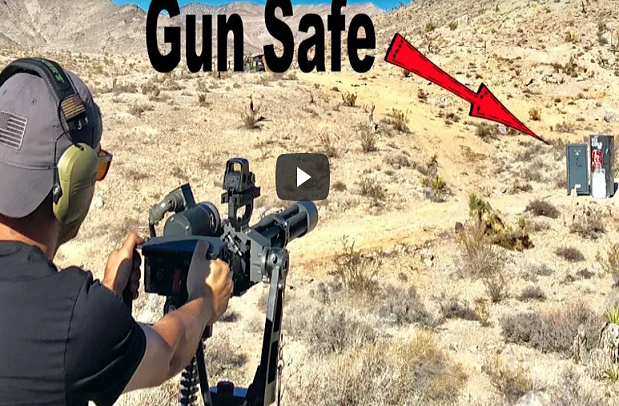 In einem verrückten Experiment beschießen amerikanische Waffen-Freaks einen Stand-Tresor mit einer Minigun. Ob der Wertschutzschrank das überlebt?