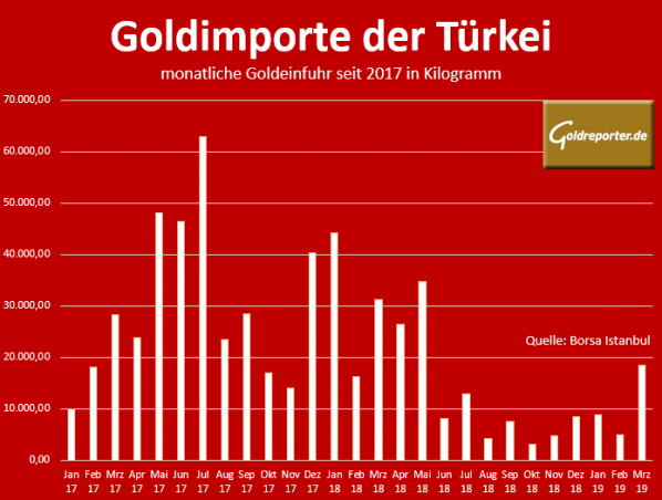 Die Goldimporte der Türkei haben ein 11-Monats-Hoch erreicht. Im März holte man wieder mehr als 18 Tonnen Gold ins Land.