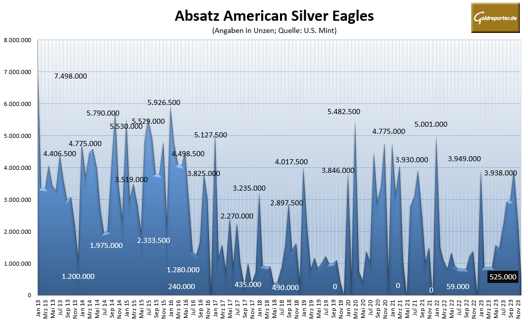 U.S. Mint: Edelmetall-Absatz im Dezember eingebrochen