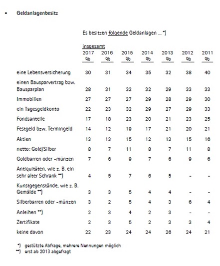 • 8 Prozent der Befragten gaben an, Gold/Silber zu besitzen (Vorjahr: 7 %)