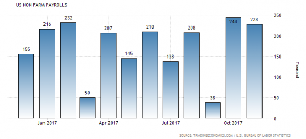 Neues vom US-Arbeitsmarkt: Am heutigen Nachmittag hat das U.S. Bureau of Labor Statistics die „Non-farm Payrolls“ für den Monat November veröffentlicht. Demnach wurden im vergangenen Monat 228.000 neue Stellen außerhalb der Landwirtschaft geschaffen. Analysten hatten ein Jobwachstum von nur 195.000 erwartet. Die Vormonatszahl wurde dagegen von 261.000 auf 244.000 nach unten revidiert. Die US-Arbeitslosenquote blieb mit 4,1 % auf dem Niveau des Vormonats. Mehr