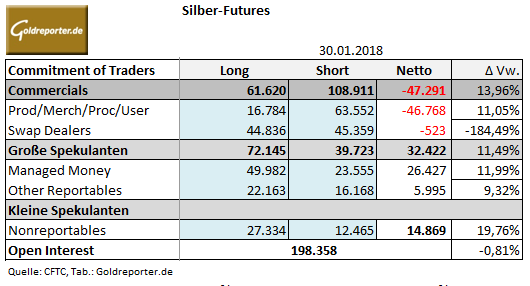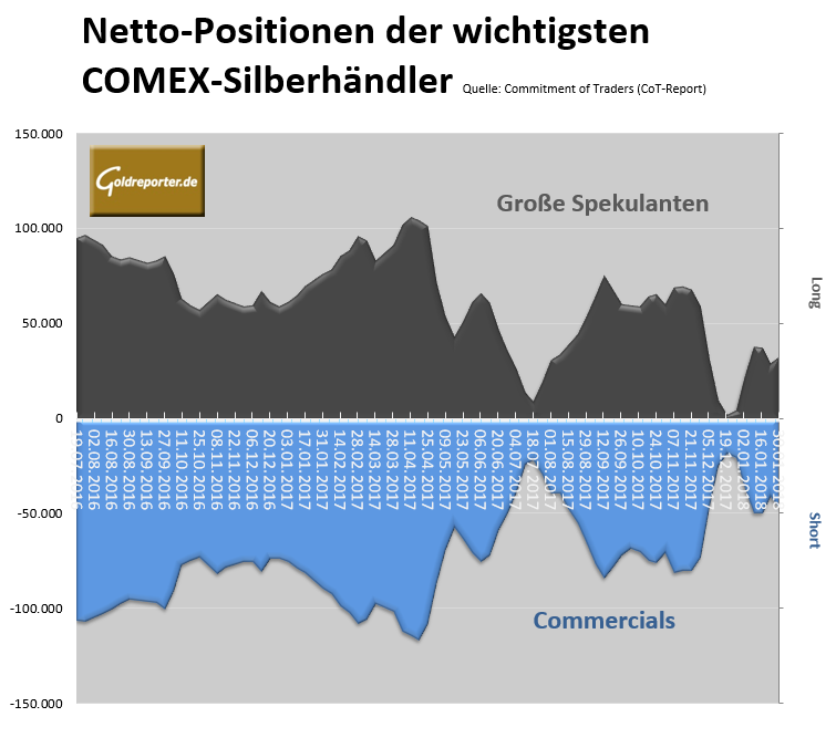 Die aktuellen CoT-Daten vom US-amerikanischen Silber-Futures-Handel an der COMEX zeigen gegenüber Vorwoche folgende Veränderungen.