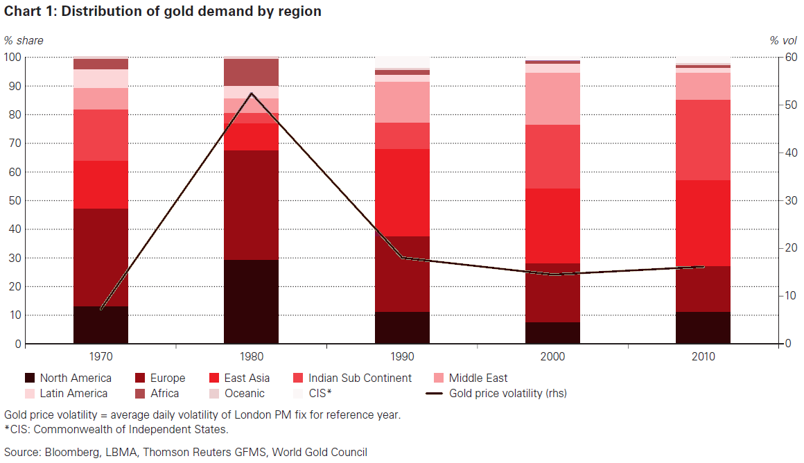 goldnachfrage nach Regionen (Quelle: WGC, Thompson Reuters GFMS)